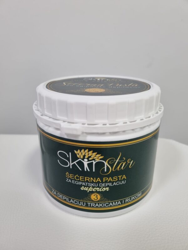 Šećerna pasta za egipatsku depilaciju Skin Star – za depilaciju trakicama i rukom 3. Sastojci: šećer, voda, limunska kiselina Količina: